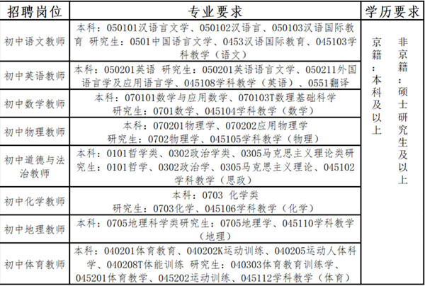 面向京内在职优秀教师。符合顺义区教委招聘条件,具备丰富的教育教学经验,拥有初中学段任教经历;热爱教育事业,责任心强,善于沟通交流,具备良好的敬业精神;硕士研究生及以上学历、具有高级教师及以上职称,有奥赛辅导经验,或获得区级骨干等荣誉称号者优先考虑。