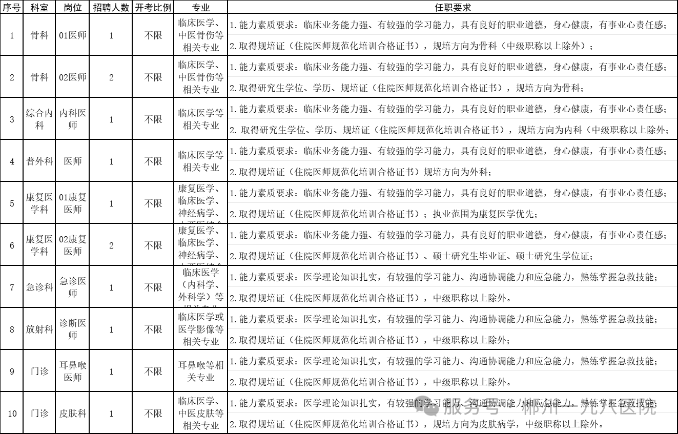 4.本科及以上学历,具备执业医师资格,取得初级或以上职称。