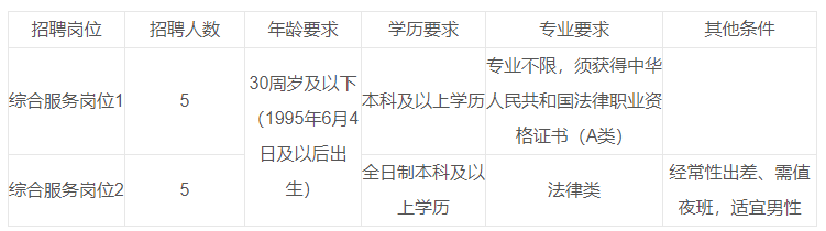 辅助岗位10人,招聘岗位、人数及条件见《徐州市云龙区人民法院公开招聘辅助人员岗位简介表》