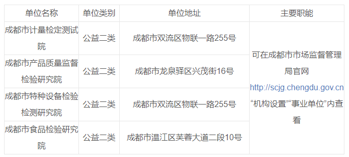成都市市场监督管理局所属4家事业单位公开考核招聘工作人员公告