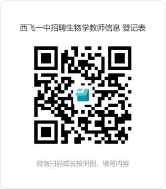 长按或扫描下方二维码,填写并提交《西飞一中招聘生物学教师信息登记表》。