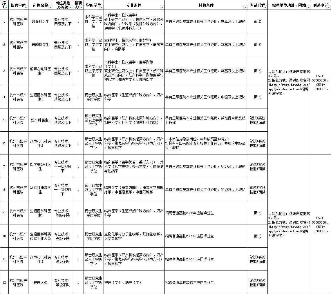 - 2025下半年杭州市妇产科医院招聘高层次、紧缺专业人才12人公告 2025-10-16